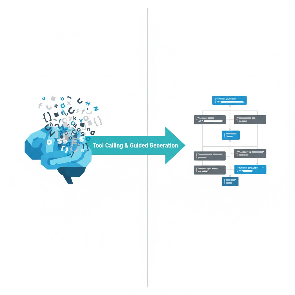 Modele językowe osiągnęły niezwykłą zdolność generowania tekstu, ale ich użyteczność w systemach produkcyjnych była długo ograniczona przez nieprzewidywalność wyników. Tool calling i guided generation to dwie kluczowe techniki, które przekształcają modele z generatorów losowego tekstu w niezawodne komponenty aplikacji biznesowych.
