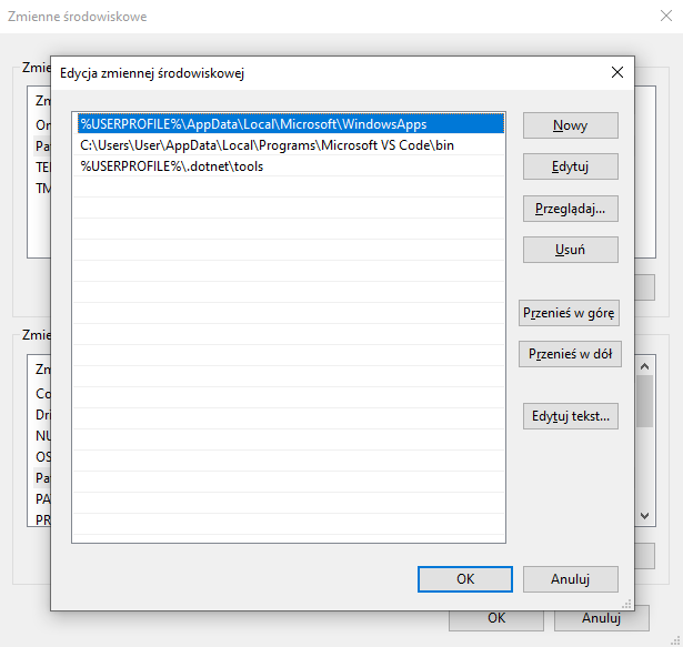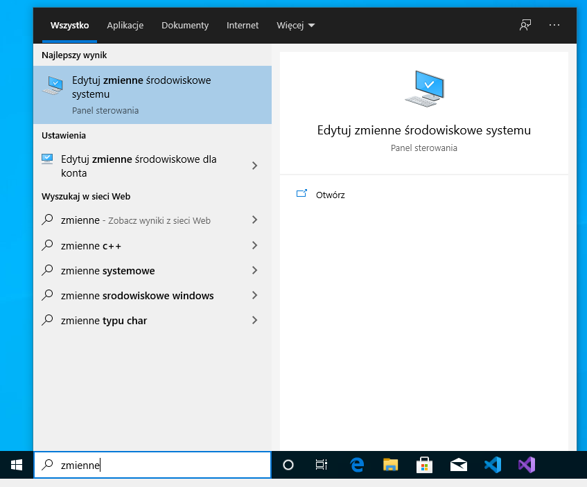 Następnie pobrane archiwum należy wypakować w wybrane przez siebie miejsce na dysku i dodać ścieżkę ffmpeg do pliku exe (folder ffmpeg/bin/) do zmiennej środowiskowej a zrobimy to korzystając z wyszukiwarki